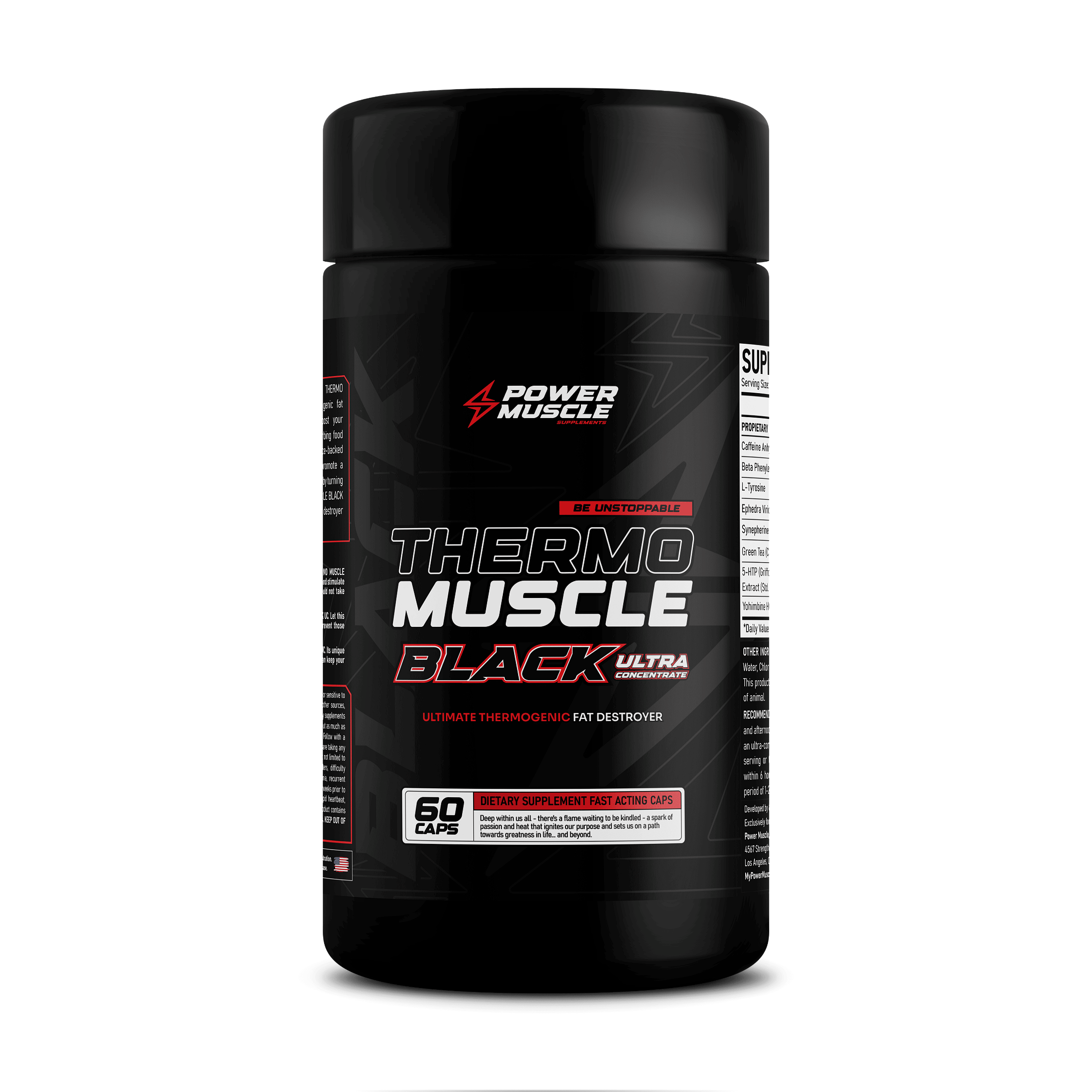Start carving out your ideal physique with THERMO MUSCLE BLACK UC - the ultimate thermogenic fat destroyer. This powerful formula helps boost your metabolism for increased calorie burning, curbing food cravings, and deterring overeating. The science-backed ingredients in THERMO MUSCLE BLACK UC promote a powerful thermogenic effect that helps burn fat by turning up your body's internal furnace. THERMO MUSCLE BLACK UC is an ultra concentrated super potent fat destroyer designed to deliver results fast!